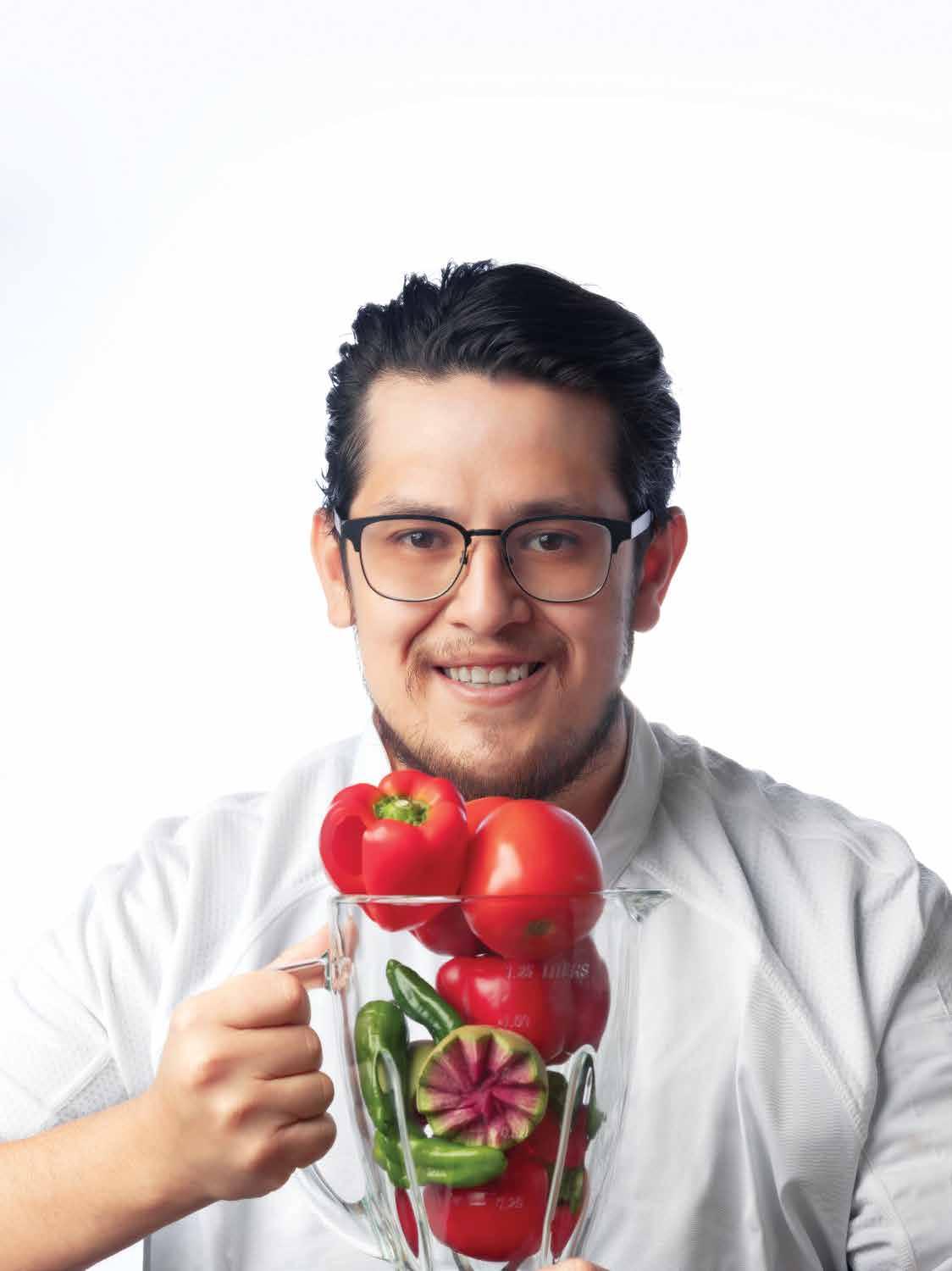 l Licuar jitomates, cebolla, ajo, chiles, sal y pimienta.