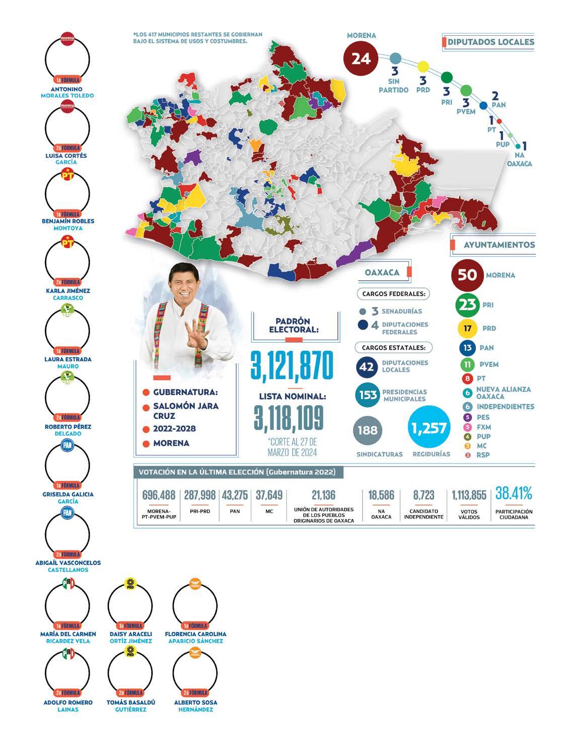 A nivel estatal, los electores votarán a los 42 curules del Congreso Local (Morena lleva mayoría con 24), 153 presidencias municipales (de las cuales Morena encabeza 50), 188 sindicaturas y mil 257 regidurias.
