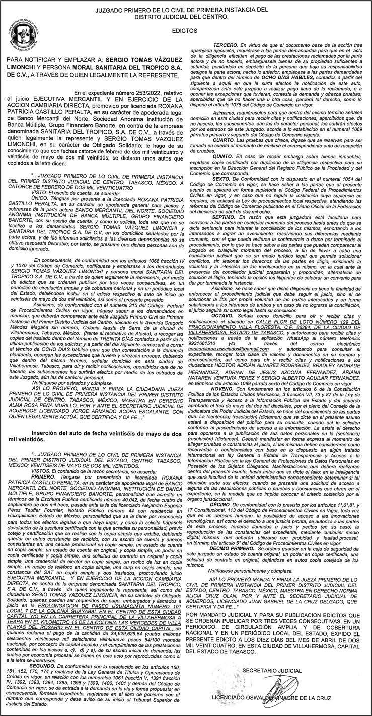 Se notifica lo anterior para todos los efectos legales a que haya lugar.