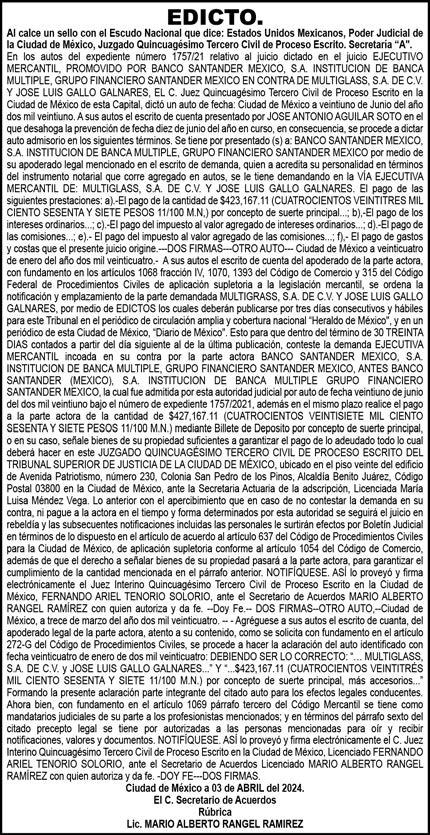 En mi carácter de representante legal de las empresas que conforman Grupo Andrade, vengo a realizar las siguientes precisiones en relación con la nota informativa publicada el 12 de mayo de 2024, bajo el título "Paran a favorita de patrullas-CDMX", firmada por el periodista Benito Jiménez: