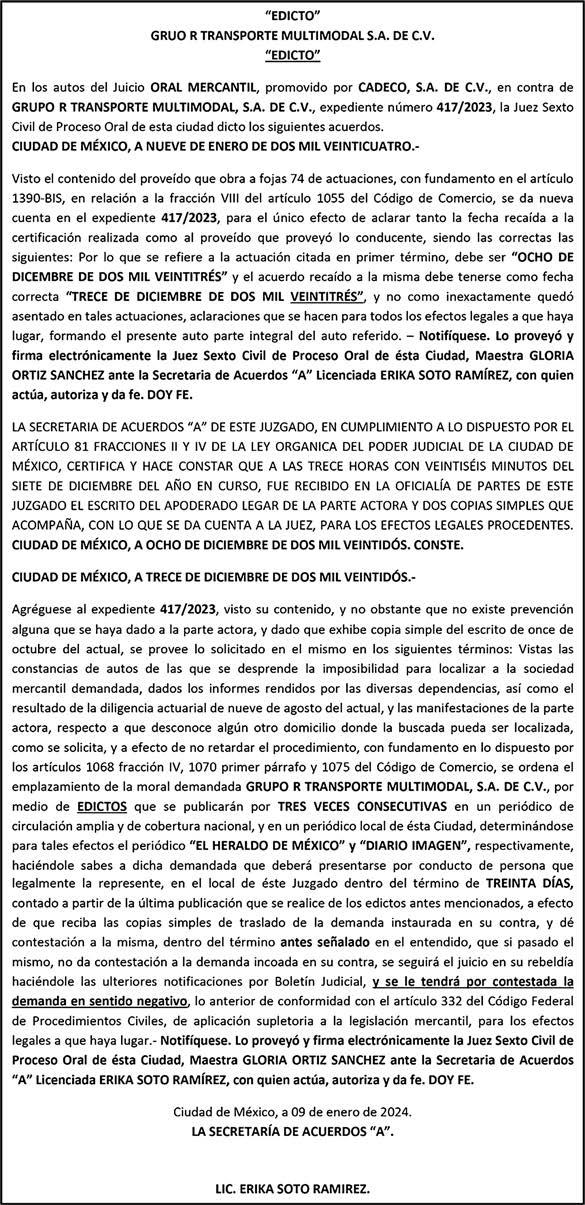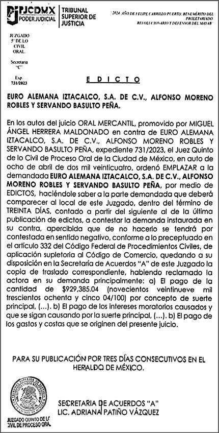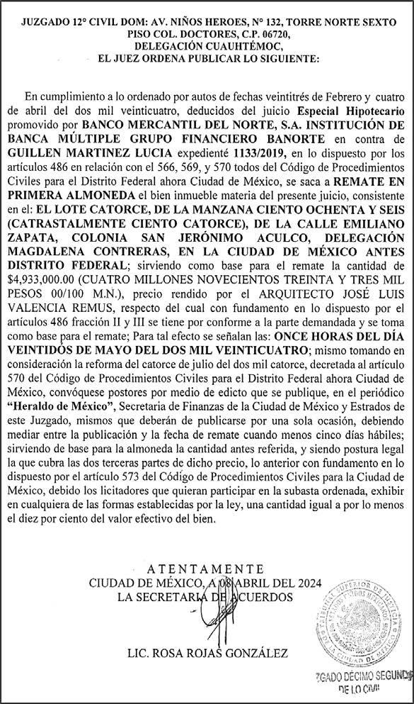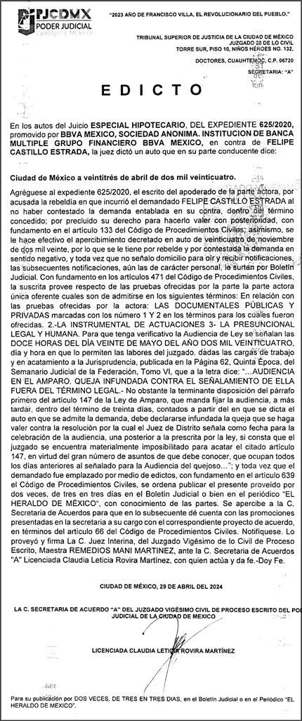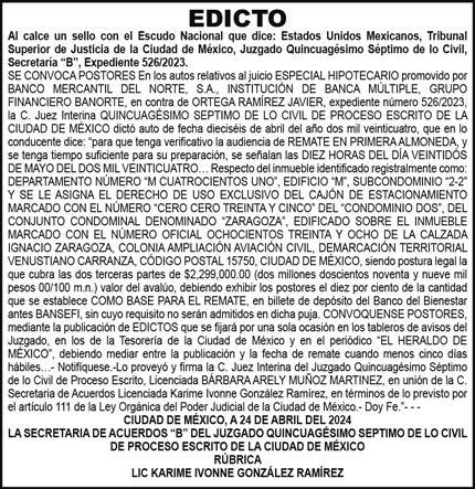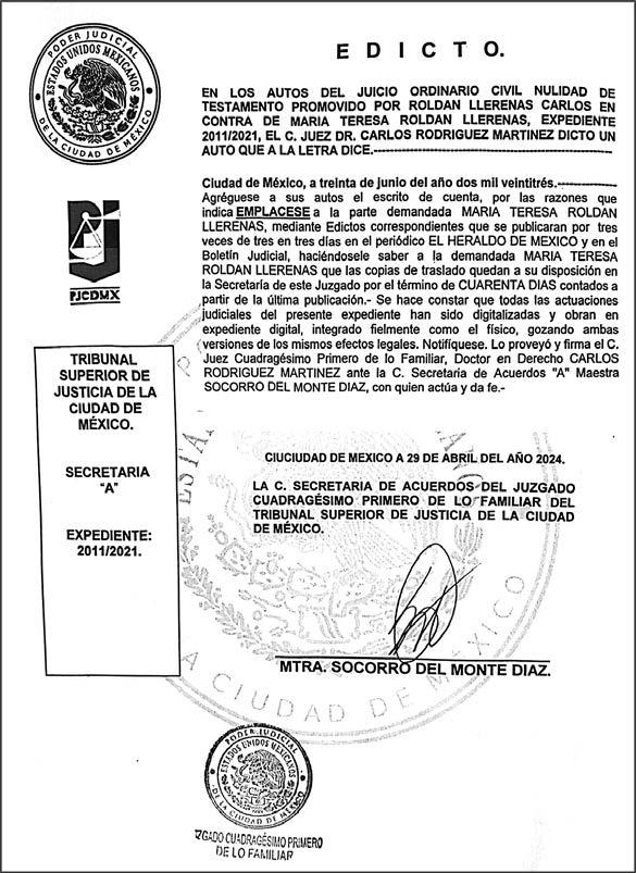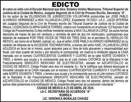 Diario El Heraldo de México. Editor responsable: Alfredo González Castro. Número de Certificado de Reserva otorgado por el Instituto Nacional del Derecho de Autor 04-2009-060419022100-101. Número de Certificado de Licitud de título y Contenido No.16921. Domicilio de la Publicación: Paseo de la Reforma No. 250, Piso 24, Colonia Juárez, Del. Cuauhtémoc, C.P. 06600, Ciudad de México. Impreso en Talleres de La Crónica Diaria S.A. de C. V. Calzada Azcapotzalco La Villa No. 160 Barrio San Marcos , Alcaldia Azcapotzalco, CP 02020. Publicación Diaria. Todos los derechos están reservados. Queda estrictamente prohibida la reproducción total o parcial de los contenidos e imágenes de esta publicación sin previa autorización de El Heraldo de México. El contenido de los artículos es responsabilidad exclusiva de los autores.
