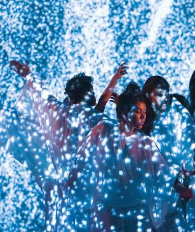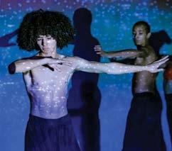 ARRIBA. Los intérpretes de Embosquecerse portan brazaletes con múltiples sensores entrenados con IA. Foto: David Flores Rubio.