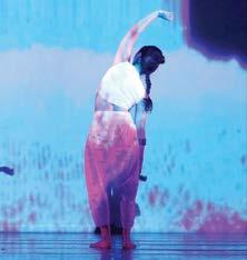 CENTRO. Abigail Jara, en primer plano, en la coreografía que usa herramientas digitales. Foto: David Flores Rubio.