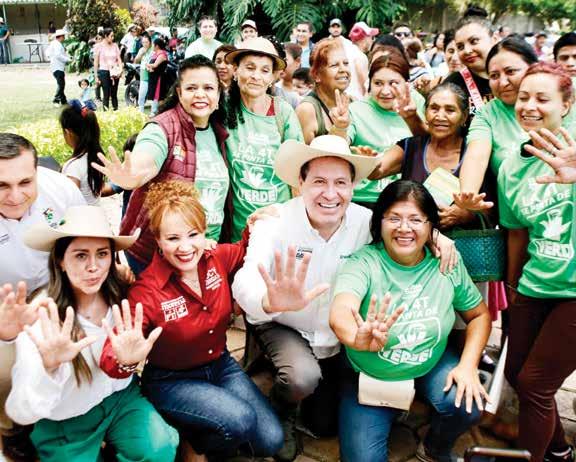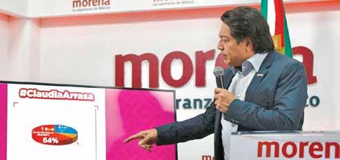refugiándose con el candidato de la coalición de Morena, Partido del Trabajo y Partido Verde Ecologista de México.