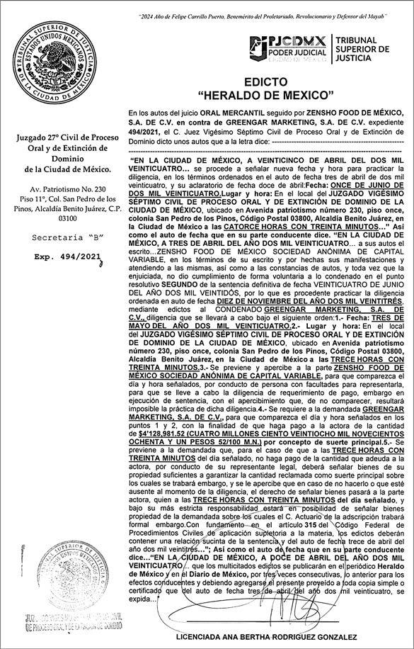 Diario El Heraldo de México. Editor responsable: Alfredo González