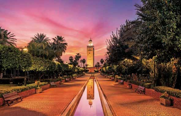 Entre la tradición y la modernidad, la ciudad se desdobla sobre el desierto como un espejismo súperestimulante. Paseando por la plaza Jemaa El-Fna y los zocos con sus colores brillantes y olores seductores, la ciudad roja ofrece imágenes inolvidables. Paseos en carros tirados por caballos, terrazas soleadas y pequeñas galerías completan la postal.