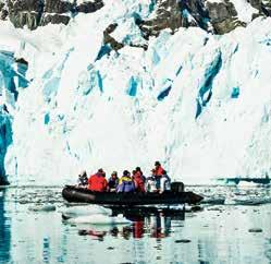 A pesar de que cada vez más viajeros visitan el continente congelado, ya sea por mar o sobrevolando sus largas planicies de hielo, glaciares y bahías habitadas por pingüinos, sus montañas, desiertos blancos y aguas heladas ofrecen un sinfín de aventuras reservadas para las y los viajeros más intrépidos. Actualmente, se puede acampar a la intemperie para ver las estrellas –y, si tienes suerte, avistar osos polares–, bucear bajo el fuerte oleaje polar y remar en kayak entre cuerpos gigantes de hielo.