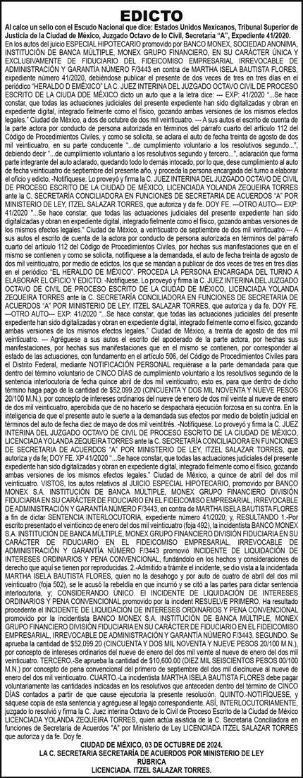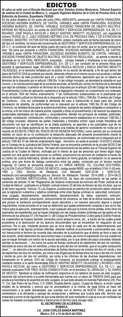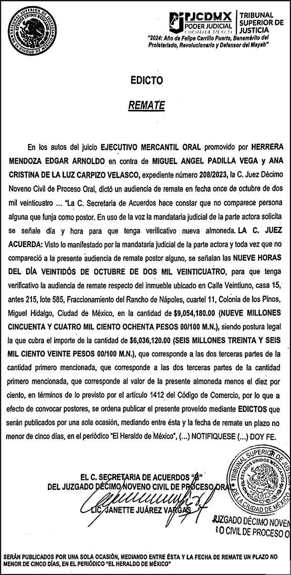 DIRECTOR GENERAL Periódico El Heraldo de México. Editor Responsable: Alfredo González Castro, Número de Certificado de Reserva otorgado por el Instituto Nacional del Derecho de Autor: 04-2009-060419022100-101. Número de Certificado de Licitud de Título y Contenido: 16921. Domicilio de la Publicación: Av. Insurgentes Sur, No. 1271, piso 2, oficina 202, Extremadura Insurgentes, Benito Juárez, C.P. 03740. Impreso en LA CRÓNICA DIARIA, SA DE CV, Avenida Azcapotzalco La Villa 160, Colonia San Marcos, Alcaldía Azcapotzalco, Ciudad de México, CP 02020.