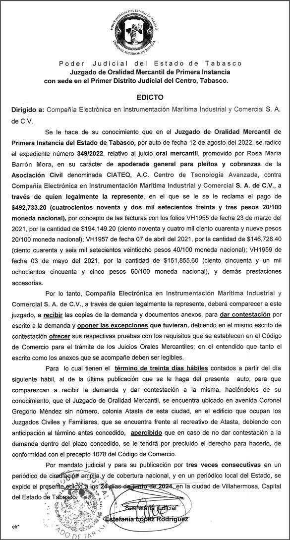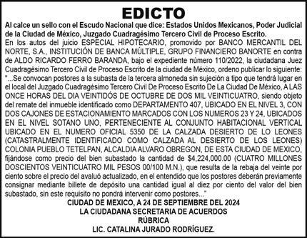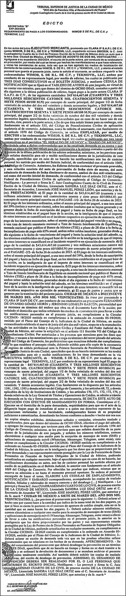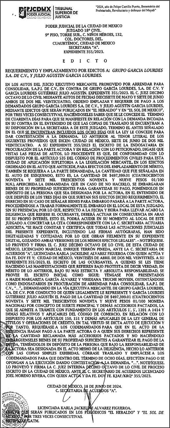 Distribuidores: ARREDONDO E HIJOS DISTRIBUIDORA, SA de CV, Iturbide 18 local D, Colonia Centro de la Ciudad de México Área 4, Alcaldía Cuauhtémoc, Ciudad de México, CP 06040. ELIZABETH IVONNE GUTIÉRREZ ORTIZ, Callejón 2o de la Luz 52, Departamento 4, Interior 1, Colonia Anáhuac II Sección, Alcaldía Miguel Hidalgo, Ciudad de México, CP 11320. AEROVÍAS EMPRESA DE CARGO, SA de CV, Paseo de la Reforma 445, Piso 9, Colonia Cuauhtémoc, alcaldía Cuauhtémoc, Ciudad de México, CP 06000 Publicación Diaria No. ____, día xx de mes de 2024.