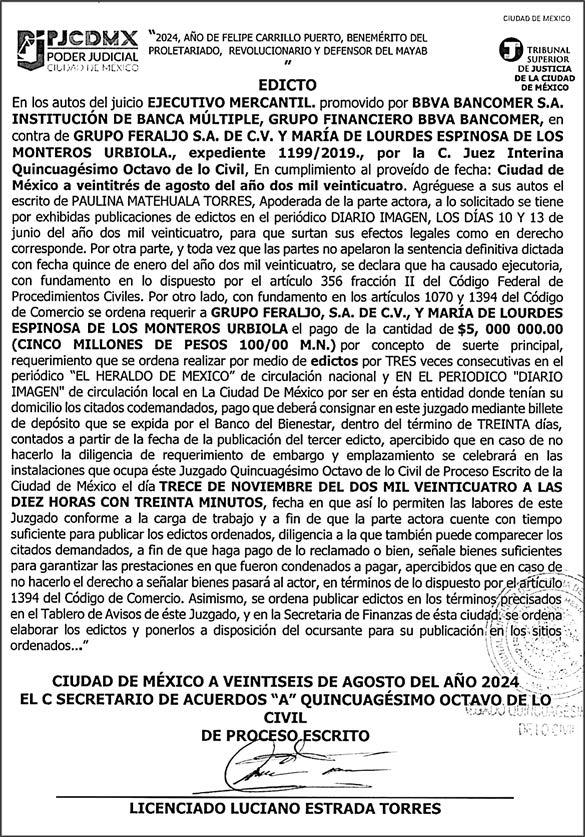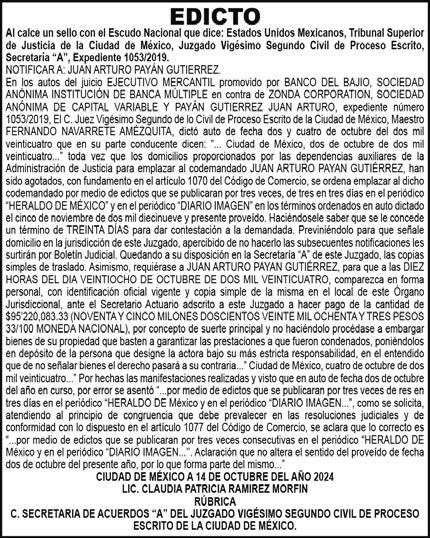 Periódico El Heraldo de México. Editor Responsable: Alfredo González Castro, Número de Certificado de Reserva otorgado por el Instituto Nacional del Derecho de Autor: 04-2009-060419022100-101. Número de Certificado de Licitud de Título y Contenido: 16921. Domicilio de la Publicación: Av. Insurgentes Sur, No. 1271, piso 2, oficina 202, Extremadura Insurgentes, Benito Juárez, C.P. 03740. Impreso en LA CRÓNICA DIARIA, SA DE CV, Avenida Azcapotzalco La Villa 160, Colonia San Marcos, Alcaldía Azcapotzalco, Ciudad de México, CP 02020. Distribuidores: ARREDONDO E HIJOS DISTRIBUIDORA, SA de CV, Iturbide 18 local D, Colonia Centro de la Ciudad de México Área 4, Alcaldía Cuauhtémoc, Ciudad de México, CP 06040. ELIZABETH IVONNE GUTIÉRREZ ORTIZ, Callejón 2o de la Luz 52, Departamento 4, Interior 1, Colonia Anáhuac II Sección, Alcaldía Miguel Hidalgo, Ciudad de México, CP 11320. AEROVÍAS EMPRESA