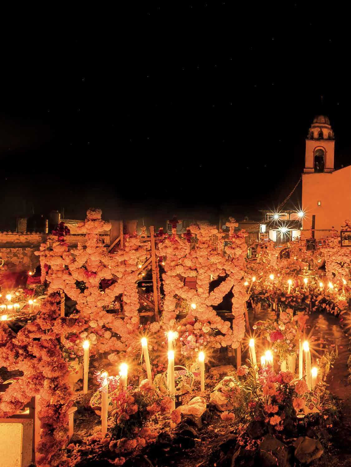 bles –entre el día y la noche, la felicidad y la tragedia, la solemnidad de los ritos y el desenfado de la fiesta; entre el principio y el final, e incluso entre lo real y lo imaginario– se borrarían bajo la luz de las veladoras, el sonido de la música, el aroma del cempasúchil y el sabor de los platillos y bebidas preparadas con cuidado, cariño y mucho tiempo para recibir a los seres queridos que, sólo por esa noche, nos vendrían a visitar. Michoacán es un estado muy orgulloso de sus paisajes,