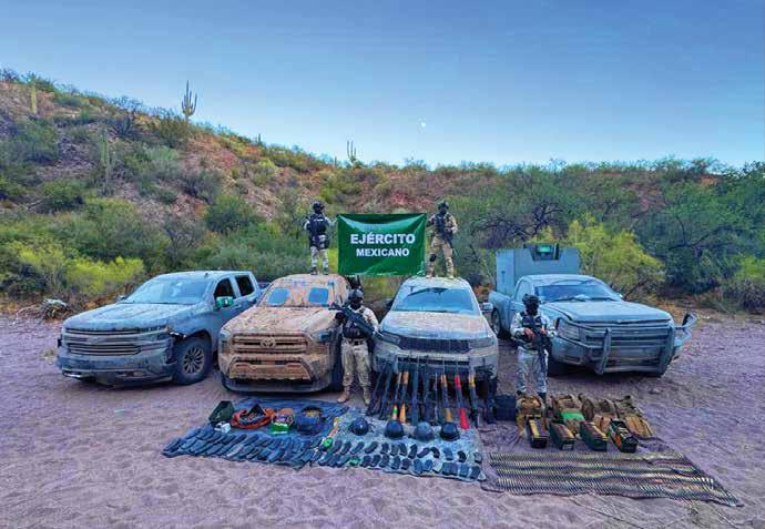 ● Sedena y Guardia Nacional aseguraron armamento de alto poder y vehículos con blindaje artesanal, en Sonora. Tras un ataque del crimen organizado, Fuerzas Armadas confiscaron 11 armas de fuego, 25 explosivos y 5 vehículos blindados. REDACCIÓN