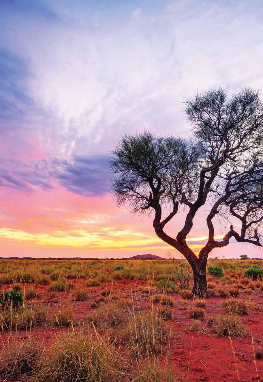 as extensiones aparentemente infinitas de desiertos rojos se abren en todas las direcciones, como si aquí –en una de la coordenadas más remotas de la Tierra–el mundo aún no hubiera terminado de nacer. En el Outback australiano, el tiempo se mide en millones de años, las rocas ejercen un dominio absoluto sobre el horizonte y sus vistas panorámicas, y la tierra resplandece con los tonos escarlatas, cobrizos y carmesí de la naturaleza viva.