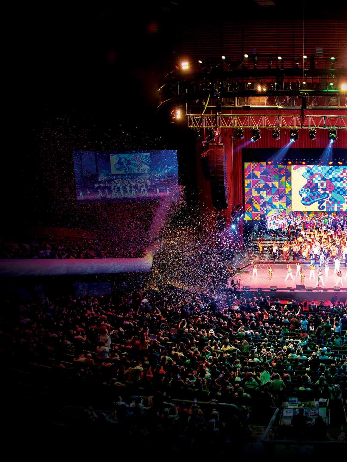“Somos los Semilleros creativos y venimos a contarles las historias de nuestros lugares con música, danza y circo”, dije ron los primeros niños y niñas que aparecieron en el escenario junto al actor Mario Iván Martínez, quien fungió como presen tador. Después, poco a poco, el espectáculo fue subiendo el ánimo de los espectadores: desde la interpretación de "Alas (a Malala) de Arturo Márquez, interpretada por la Orquesta Nacional Comunitaria, y conducida por Roberto Rentería, mientras Elisa Carrillo actuaba en el escenario, hasta el cierre de Mare Advertencia Lirika, junto al flautista Horacio Franco.