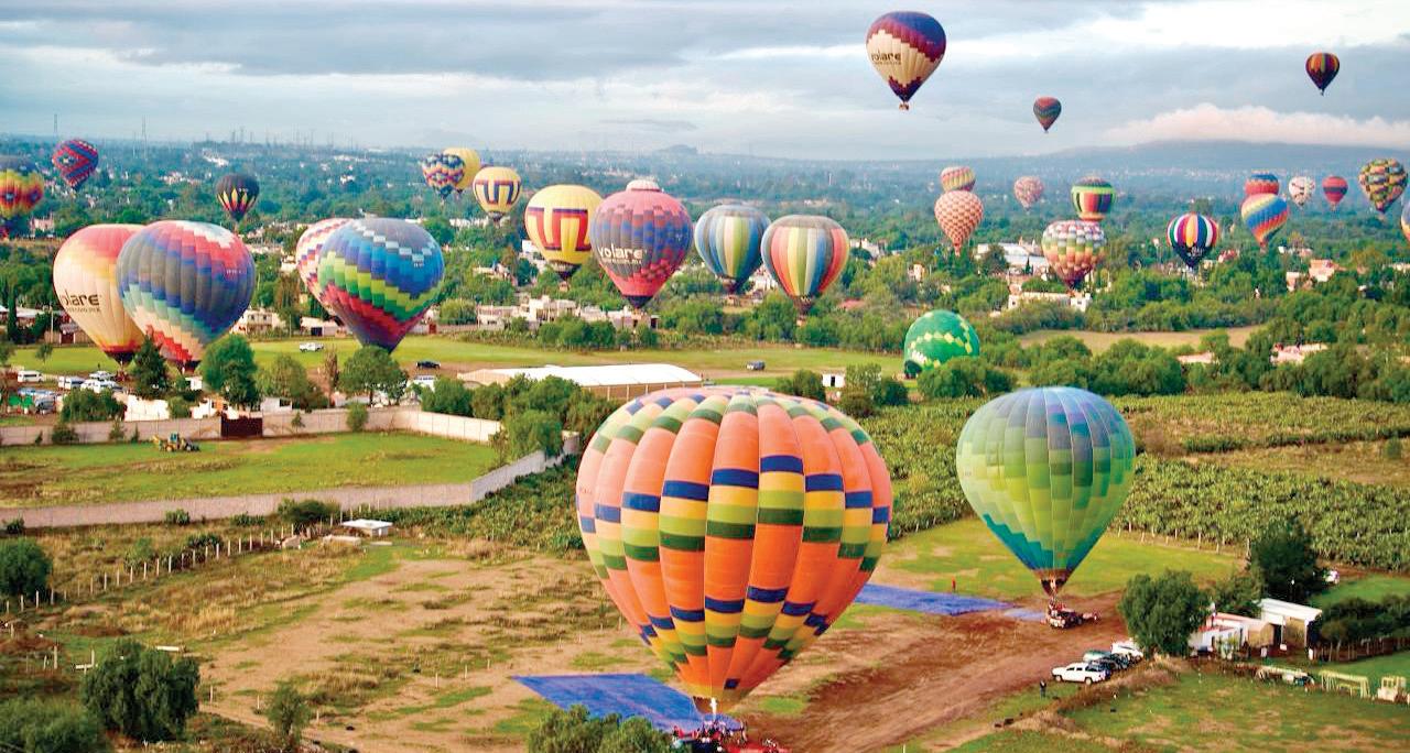 Con los primeros rayos del sol y en silencio, decenas de globos sobrevuelan Teotihuacan, creando una perspectiva de colores y niveles en el horizonte. Foto: Guillermo O’Gam.