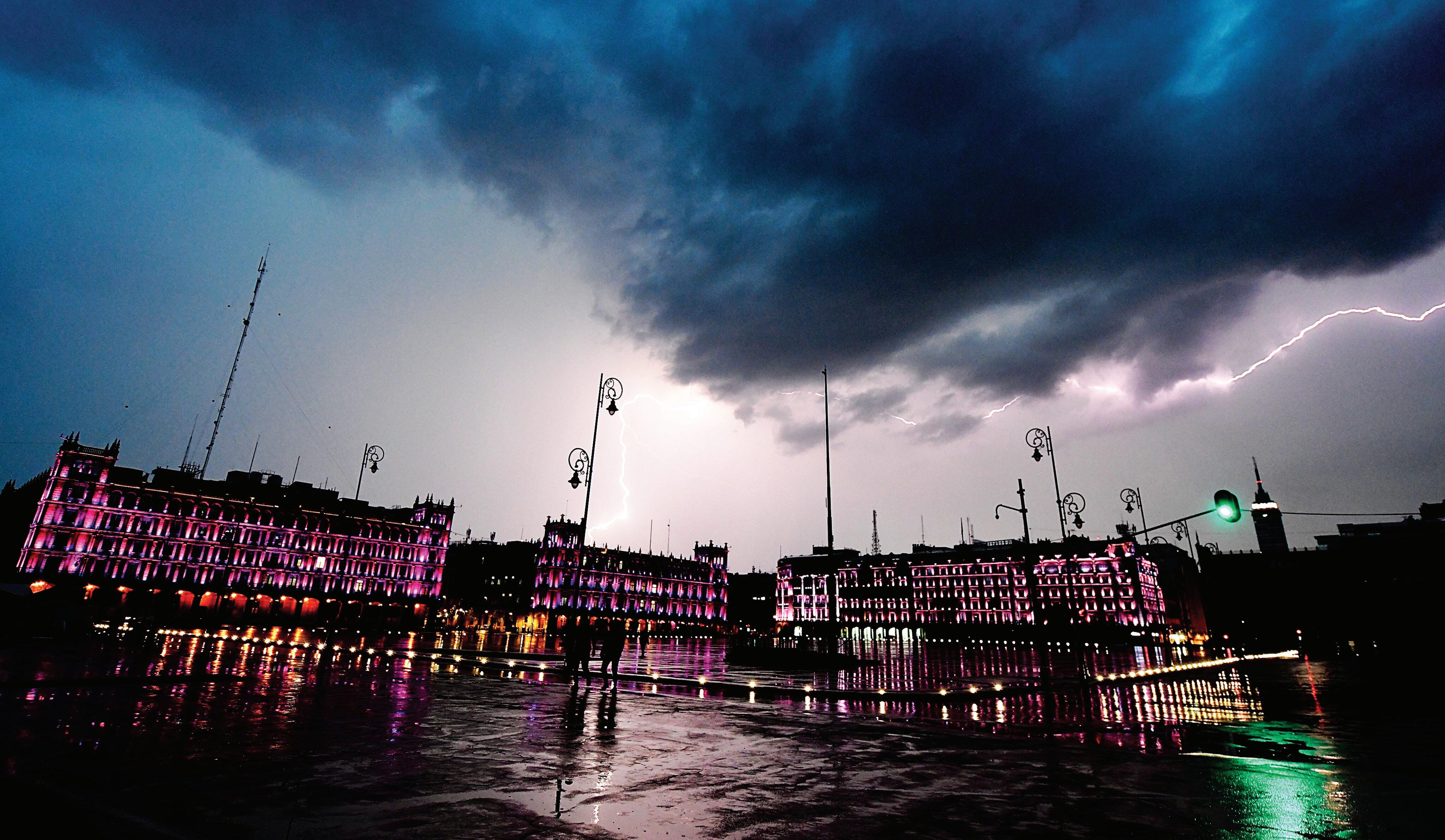 Una tormenta atípica se registró en la CDMX con intenso granizo y repetidos relámpagos que iluminaron de manera dramática la plancha del Zócalo en plena pandemia de COVID-19. Lucía una tarde de miedo: a pesar de la lluvia había una tormenta eléctrica pocas veces vista, así que me ubiqué en una esquina de la plaza, preparé mi cámara con un gran angular, realicé los ajustes necesarios: sensibilidad del sensor, velocidad de obturación y apertura del diafragma. Sabía que si lograba obtener la imagen sería fantástica.