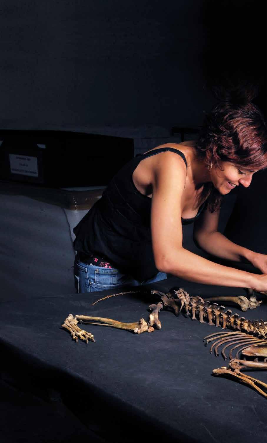 CIENCIA. La arqueóloga Ximena Chávez ante los restos de un espécimen rescatado. Foto: cortesía PTM.