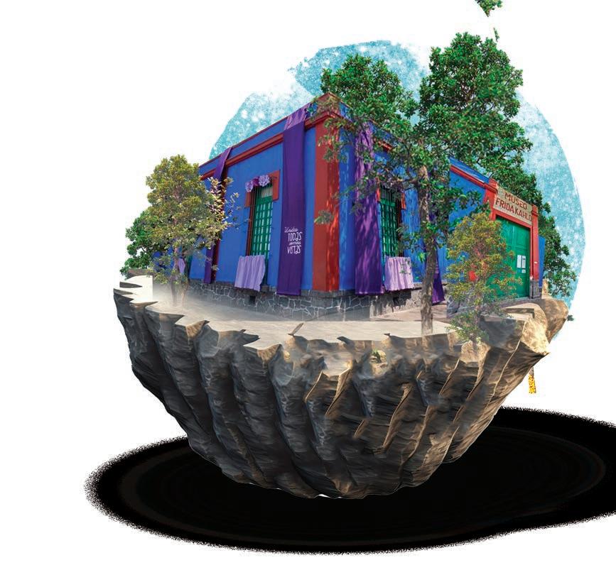 ● El Museo Frida Kahlo, mejor conocido como La Casa Azul fue el lugar donde la pintora mexicana pasó la mayor parte de su vida; primero con su familia, y, años después, al lado del muralista Diego Rivera. En el recinto y sus jardines se exponen objetos personales y pinturas de ambos artistas, arte popular, esculturas precolombinas, fotografías, documentos, libros y muebles. En la construcción del inmueble participaron distintas figuras, entre ellas el pintor y arquitecto funcionalista Juan O’Gorman.