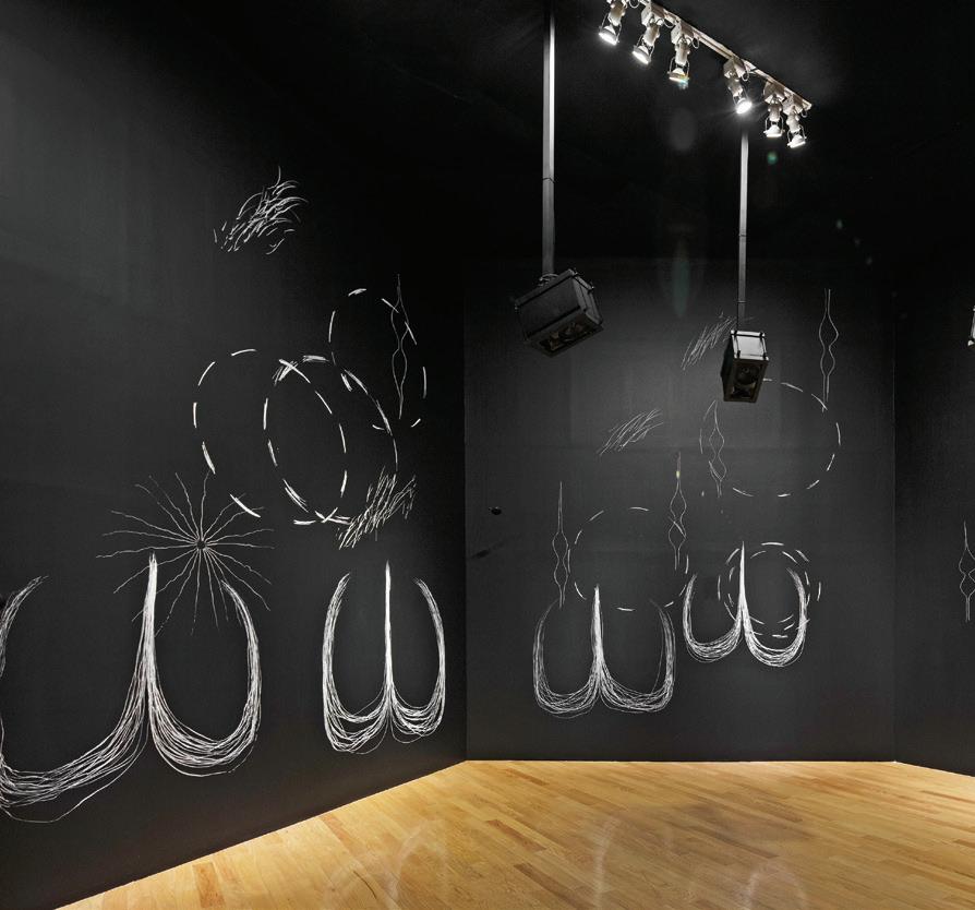 UNA BIENAL CON CAMBIOS PARA BIEN Magalí Lara (CDMX, 1956), artista que ha participado en la Bienal en distintos momentos y formatos, lo hace ahora con Leteo, intervención a muros con recortes de linóleo y dibujos en lápiz y pastel con recortes de papel: “La Bienal FEMSA ha sido un paradigma importante en el arte contemporáneo mexicano; para mí ha sido muy importante participar y lo he hecho de dos maneras: invitada por Osvaldo Sánchez, en una exposición paralela y ahora con una comisión. Las dos experiencias implican pensar bien las piezas: me gusta experimentar y tomar riesgos, es una de las razones por las que simpatizo con los cambios que ha tenido la Bienal, pues ha buscado formatos diferentes y estrategias de trabajo con los artistas”.