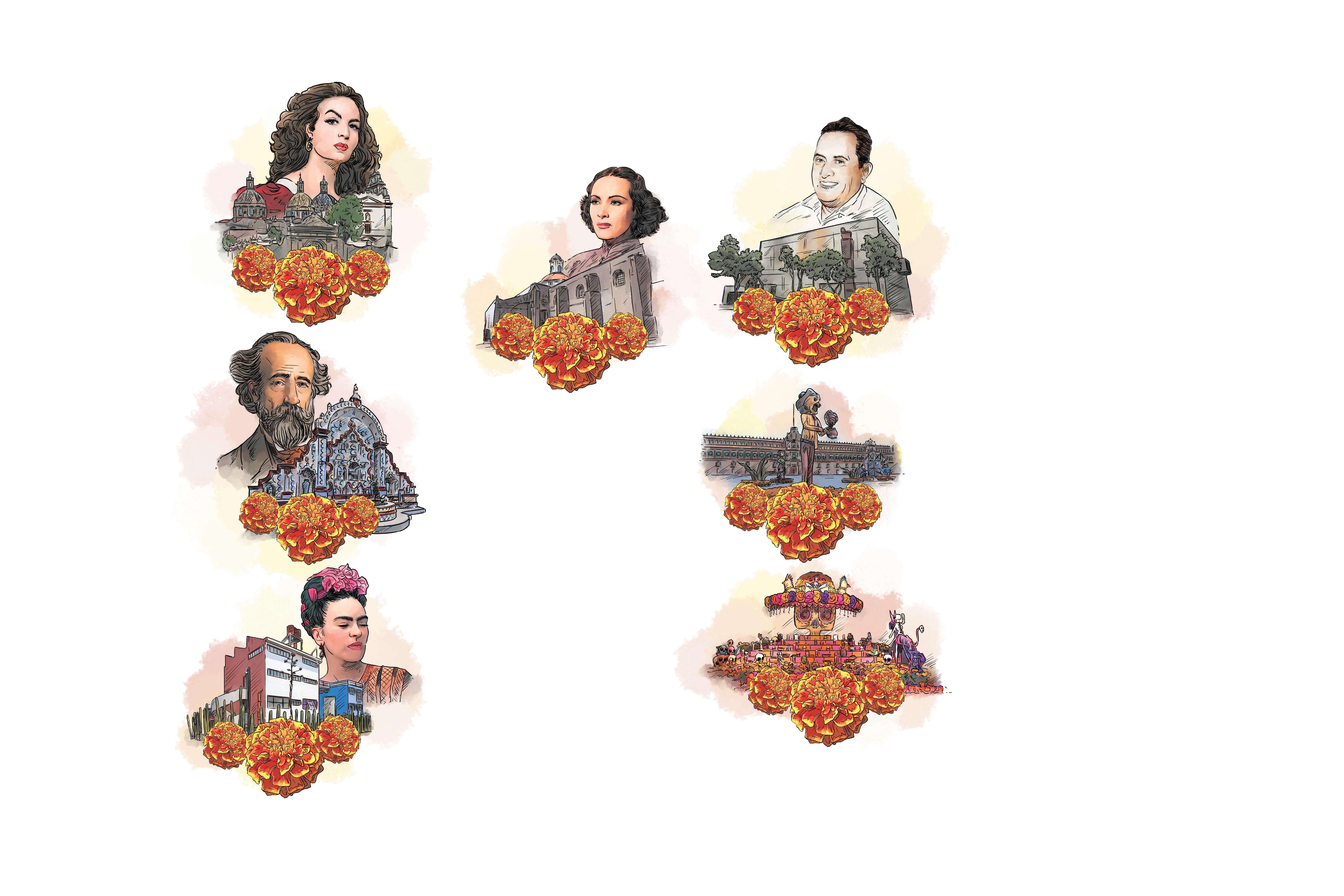 En noviembre, el olor a incienso y flor de cempasúchil impregna el ambiente; como cada año, los difuntos llegan a todos los hogares mexicanos, pero también a las plazas públicas, los museos y los espacios culturales. La convivencia con las ánimas crea un extenso circuito de colores, sabores, aromas y tradiciones al que todos están invitados: artistas, actores, coleccionistas de arte y escritores son recordados con júbilo. Te presentamos una pequeña guía para no perderte la fiesta.