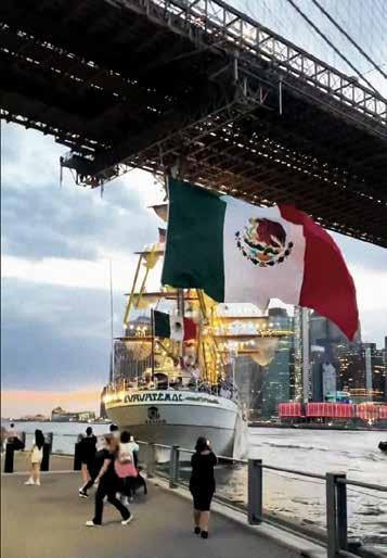 la Secretaría de Relaciones Exteriores, entre ellos el embajador de México en Estados Unidos, Esteban Moctezuma, y el alcalde de Nueva York, Eric Adams, así como autoridades de esa ciudad, quienes están brindando atención oportuna al personal y asegurando el bienestar de la tripulación.