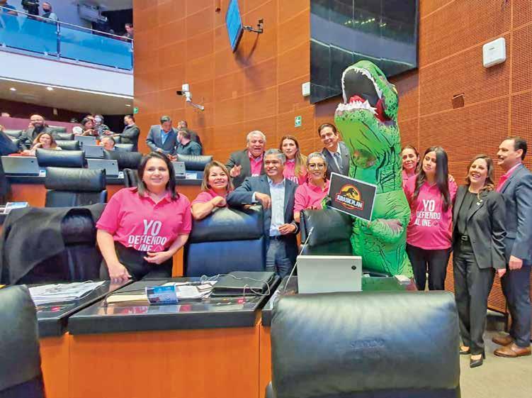 La oposición (PAN, PRI, PRD, MC y Grupo Plural), enfundada en playeras con la leyenda “El INE no se toca”, no pudo frenar la modificación a seis leyes electorales y del Poder Judicial Federal, pero anunciaron que acudirán a la Suprema Corte a interponer una acción de inconstitucionalidad, ya que acusaron que el gobierno federal busca debilitar al INE y modificar las reglas del juego para beneficiar a sus aspirantes a la presidencia rumbo a 2024.