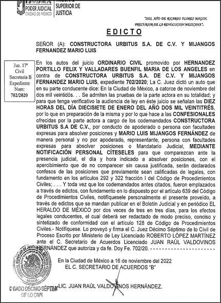 responsable: Alfredo González Castro. Número de Certificado de Reserva otorgado por el Instituto Nacional del Derecho de Autor 04-2009060419022100-101. Número de Certificado de Licitud de título y Contenido No.16921. Domicilio de la Publicación: Paseo de la Reforma No. 250, Piso 24, Colonia Juárez, Del. Cuauhtémoc, C.P. 06600, Ciudad de México. Impreso en Talleres de La Crónica Diaria , S.A. de C. V. Calzada Azcapotzalco La Villa No. 160 Barrio San Marcos Alcaldia Azcapotzalco, CP 02020 Publicación Diaria. Todos los derechos están reservados. Queda estrictamente prohibida la reproducción total o parcial de los contenidos e imágenes de esta publicación sin previa autorización de El Heraldo de México. El contenido de los artículos es responsabilidad exclusiva de los autores.