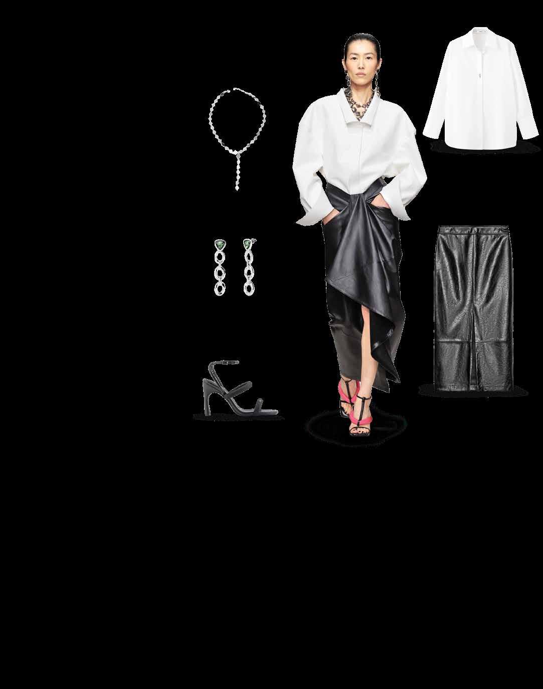 NO HAY COMBINACIÓN MÁS SOFISTICADA Y CLÁSICA QUE EL BLANCO Y NEGRO. DALE UN TWIST AL AGREGAR TEXTURAS COMO UNA FALDA DE PIEL Y ACCESORIOS GRANDES. SERÁ TU LOOK GANADOR PARA ESOS DÍAS QUE NO SABES QUÉ PONERTE