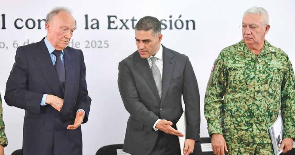 › Una vez más, el Gabinete de Seguridad federal, que coordina el secretario Omar García Harfuch, dio de qué hablar, pues ayer presentó la estrategia nacional contra la extorsión. Se basa en cinco ejes, que van de inteligencia, ayuda a víctimas e implementación de una campaña de prevención nacional que permita reducir al máximo este grave delito. Estuvo acompañado de los titulares de la Defensa, Ricardo Trevilla; de la Marina, Raymundo Morales; y de la FGR, Alejandro Gertz