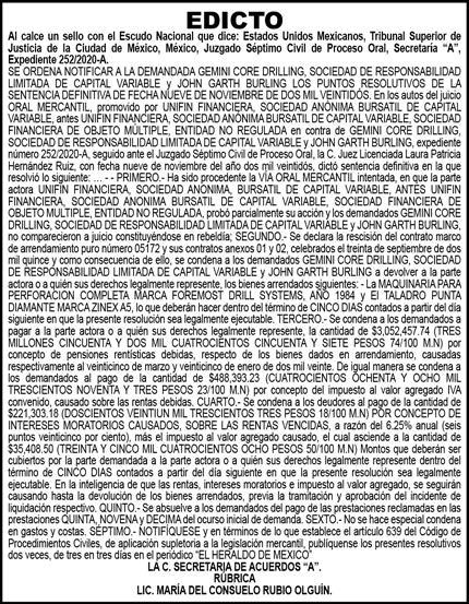 responsable: Alfredo González Castro. Número de Certificado de Reserva otorgado por el Instituto Nacional del Derecho de Autor 04-2009-060419022100-101. Número de Certificado de Licitud de título y Contenido No.16921. Domicilio de la Publicación: Paseo de la Reforma No. 250, Piso 24, Colonia Juárez, Del. Cuauhtémoc, C.P. 06600, Ciudad de México. Imprenta: Impreso en Talleres de La Crónica Diaria , S.A. de C. V. Calzada Azcapotzalco La Villa No. 160 Barrio San Marcos , Alcaldia Azcapotzalco, CP 02020. Publicación Diaria. Todos los derechos están reservados. Queda estrictamente prohibida la reproducción total o parcial de los contenidos e imágenes de esta publicación sin previa autorización de El Heraldo de México. El contenido de los artículos es responsabilidad exclusiva de los autores.