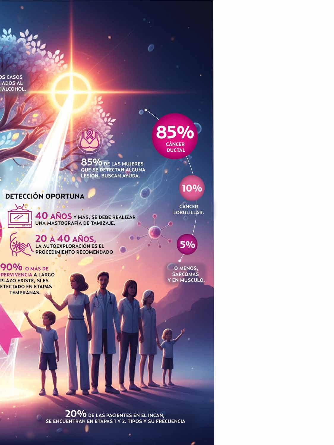 muchas veces se tiene la idea de que si soy joven, si tengo 20 y tantos años, 30 años, a mí no me va a pasar, pero vemos que sí. Entonces, gran parte de la investigación se ha enfocado en esta población y, también en mujeres metastásicas. El 85 por ciento de los casos que se diagnostican en México llegan en etapas ya avanzadas”, reveló Ana.