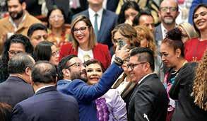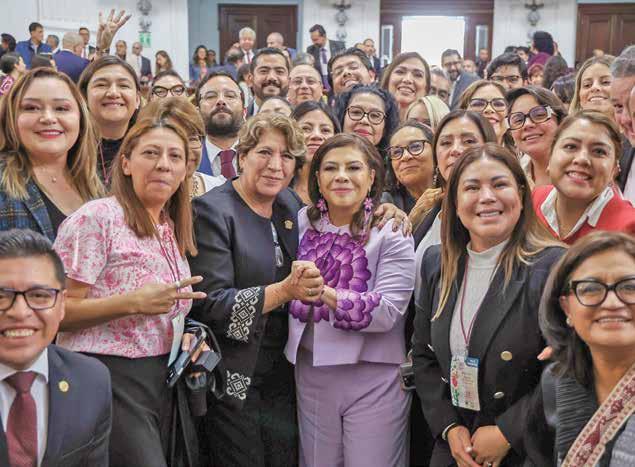 › Presentes también en el informe de la mandataria capitalina estuvieron integrantes de la dirigencia de Morena. Su presidenta nacional, Luisa María Alcalde, describió a Brugada como una mujer honesta, proveniente de la lucha social, fundadora de su movimiento y constructora de una capital de utopías y transformación.