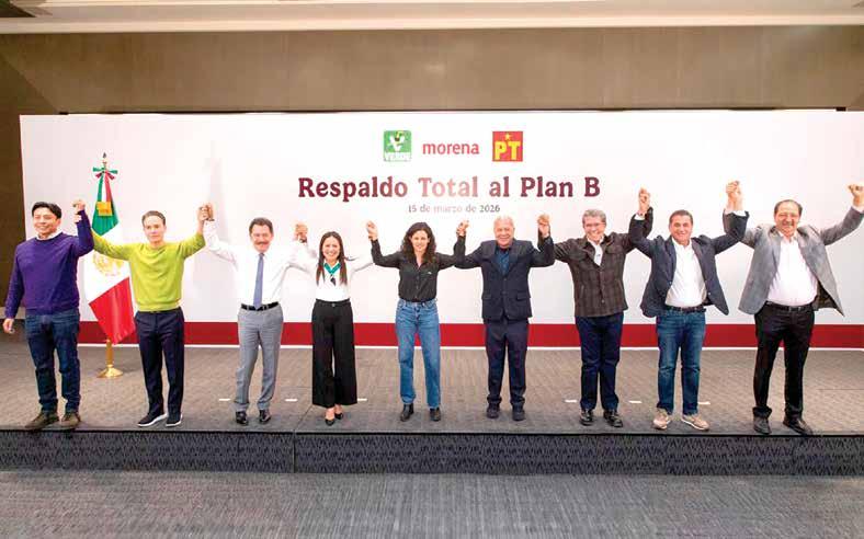 Morena, PT y PVEM cerraron filas y pactaron un respaldo total al Plan B de la reforma electoral de la presidenta Claudia Sheinbaum En un mensaje conjunto, las dirigencias nacionales y coordinaciones de los tres partidos políticos anunciaron que votarán a favor del Plan B, con lo cual disminuirán los privilegios en los Congresos estatales, también reducirán costos en municipios y el fortalecimiento de la consulta popular.