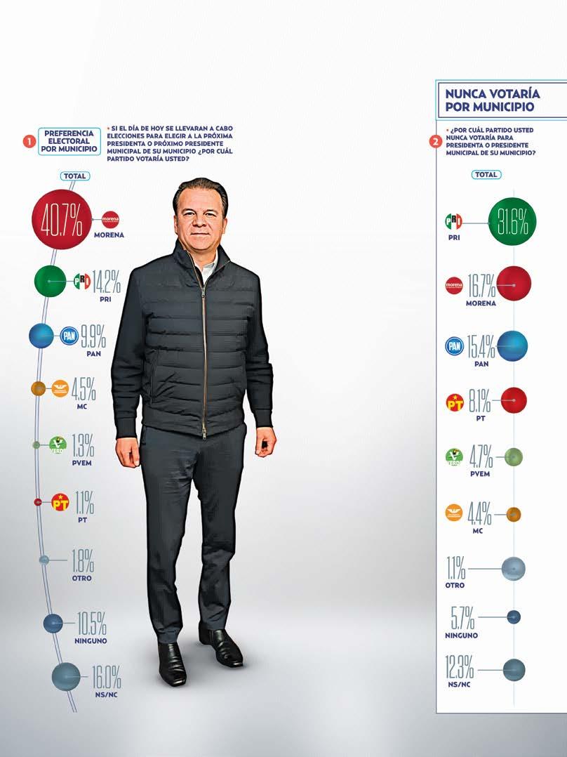 De acuerdo con la encuesta de QM Estudios de Opinión, en alianza con Heraldo Media Group, 40.7% de los ciudadanos respondieron que en los comicios para elegir a los 39 nuevos alcaldes votarán por el partido guinda
