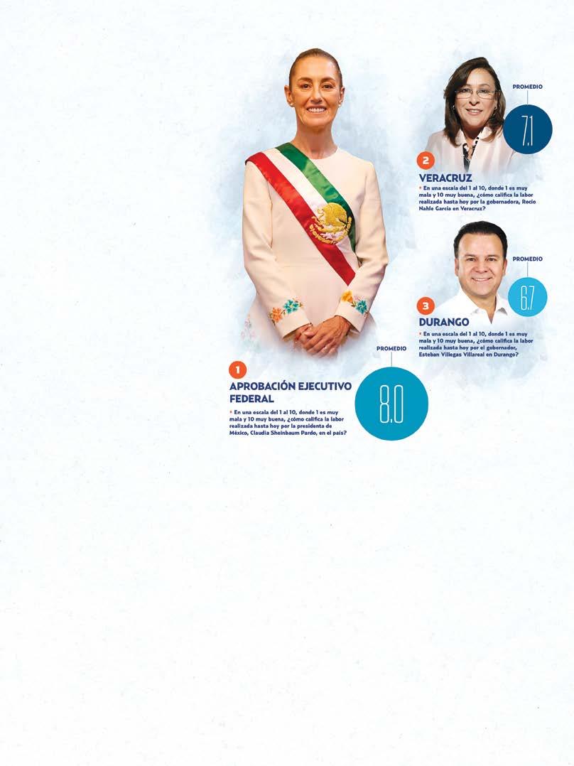 La encuesta de QM Estudios de Opinión, en alianza con Heraldo Media Group, le da a la presidenta Claudia Sheinbaum Pardo una aprobación en promedio de 8.0 en el estado Durango y de 8.0 en promedio en Veracruz.