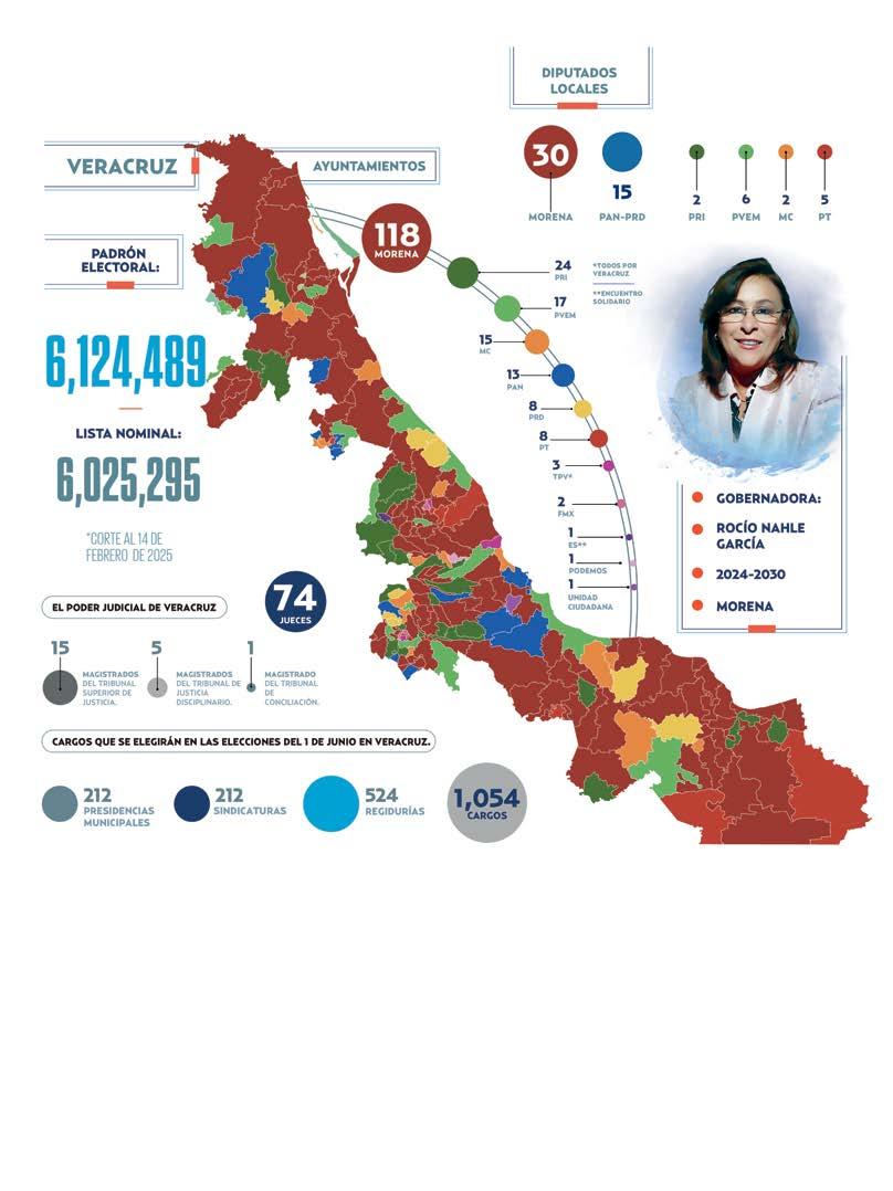 En la entidad de Veracruz se disputarán mil 054 cargos de elección, entre ellos 212 presidencias municipales, 212 sindicaturas y 630 regidurías.