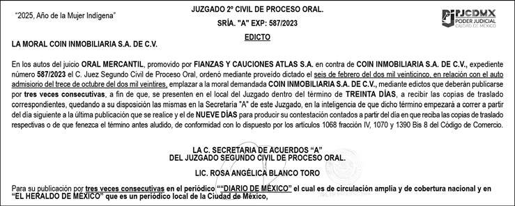 Número de Certificado de Licitud de Título y Contenido: 16921. Domicilio de la Publicación: Av. Insurgentes Sur, No. 1271, piso 2, oficina 202, Extremadura Insurgentes, Benito Juárez, C.P. 03740. Impreso en LA CRÓNICA DIARIA, SA DE CV, Avenida Azcapotzalco La Villa 160, Colonia San Marcos, Alcaldía Azcapotzalco, Ciudad de México, CP 02020. Distribuidores: ARREDONDO E HIJOS DISTRIBUIDORA, SA de CV, Iturbide 18 local D, Colonia Centro de la Ciudad de México Área 4, Alcaldía Cuauhtémoc, Ciudad de México, CP 06040. ELIZABETH IVONNE GUTIÉRREZ ORTIZ, Callejón 2o de la Luz 52, Departamento 4, Interior 1, Colonia Anáhuac II Sección, Alcaldía Miguel Hidalgo, Ciudad de México, CP 11320. AEROVÍAS EMPRESA DE CARGO, SA de CV, Paseo de la Reforma 445, Piso 9, Colonia Cuauhtémoc, alcaldía Cuauhtémoc, Ciudad de México, CP 06000 Publicación Diaria No. 2985 lunes 18 de agosto de 2025.