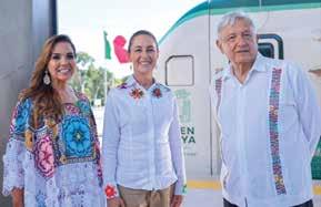 transformación, pero es necesario darle continuidad para no volver a las políticas neoliberales que hicieron daño a México”, dijo. Sheinbaum también destacó el éxito del Tren Maya, no sólo como una obra de infraestructura, sino como proyecto ambiental y cultural sin precedentes. Por su parte, la gobernadora Mara Lezama resaltó la trayectoria de López Obrador al frente del país y a Sheinbaum como la primera presidenta de México. “Han demostrado el gran amor a la región del sureste del país, que es el estandarte de la transformación”, dijo