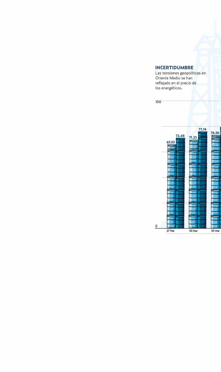 El precio del petróleo se disparó a más de 100 dólares por barril ante el ataque a instalaciones petroleras y de gas en el Golfo Pérsico. Qatar y Kuwait han cancelado contratos de gas por causa de “fuerza mayor”. Para garantizar el suministro y bajar los precios, los mayores poseedores de reservas almacenadas, China y Japón, tendrían que liberarlas. El G7 recomendó sacar al mercado 400 millones de barriles. La inflación se disparará en el mundo.