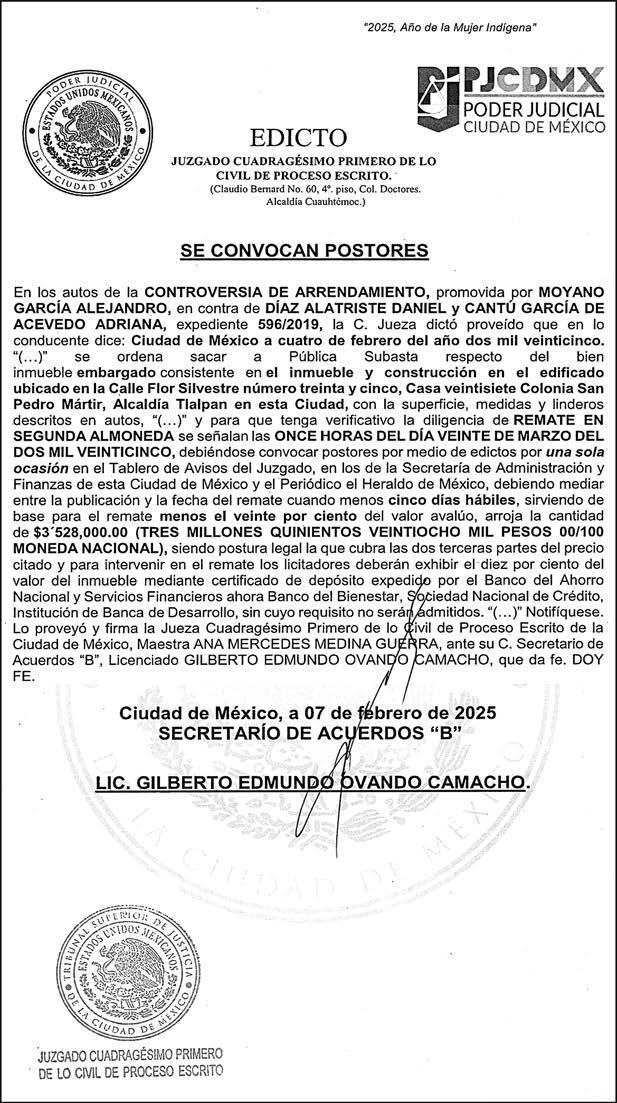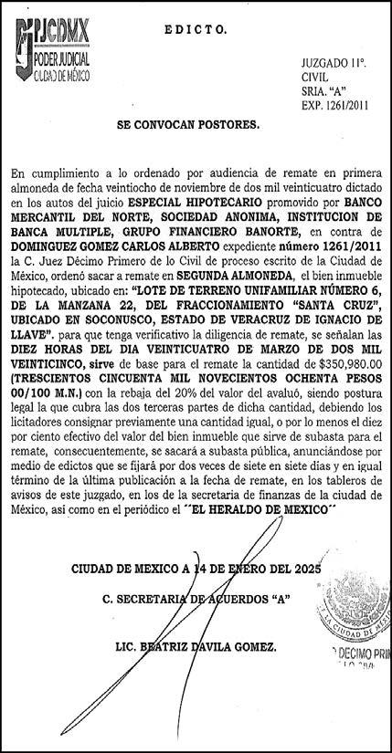 Periódico El Heraldo de México. Editor Responsable: Alfredo González Castro, Número de Certificado de Reserva otorgado por el Instituto Nacional del Derecho de Autor: 04-2009-060419022100-101. Número de Certificado de Licitud de Título y Contenido: 16921. Domicilio de la Publicación: Av. Insurgentes Sur, No. 1271, piso 2, oficina 202, Extremadura Insurgentes, Benito Juárez, C.P. 03740. Impreso en LA CRÓNICA DIARIA, SA DE CV, Avenida Azcapotzalco La Villa 160, Colonia San Marcos, Alcaldía Azcapotzalco, Ciudad de México, CP 02020. Distribuidores: ARREDONDO E HIJOS DISTRIBUIDORA, SA de CV, Iturbide 18 local D, Colonia Centro de la Ciudad de México Área 4, Alcaldía Cuauhtémoc, Ciudad de México, CP 06040. ELIZABETH IVONNE GUTIÉRREZ ORTIZ, Callejón 2o de la Luz 52, Departamento 4, Interior 1, Colonia Anáhuac II Sección, Alcaldía Miguel Hidalgo, Ciudad de México, CP 11320. AEROVÍAS EMPRESA DE CARGO, SA de CV, Paseo de la Reforma 445, Piso 9, Colonia Cuauhtémoc, alcaldía Cuauhtémoc, Ciudad de México, CP 06000 Publicación Diaria No. 2825, martes 11 de marzo de 2025.