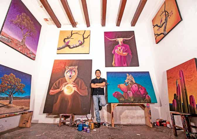 La cromática colorida de su arte es parte de ese espacio que hay entre el sueño y la vigilia, momento mágico expresado en cada cuadro.