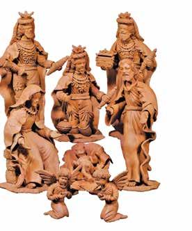 diferentes materiales y técnicas artesanales como ramas de barro, madera, producciones en papel, fibras vegetales, piedra y cerería, entre otras. Ejemplo de ellos son los árboles de la vida de Metepec, Estado de México; el barro modelado y moldeado de Tlaquepaque, Jalisco; el barro negro de San Bartolo Coyotepec, Oaxaca; las figuras de cera de Salamanca, Guanajuato; la madera esculpida y laqueada de Temalacatzingo, Guerrero, entre muchos otros.