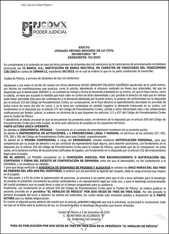 EL HERALDO DE MÉXICO Nueva Era, Año 9, Número 3138, martes 20 de enero de 2026. Es una publicación DIARIA (lunes a domingo) de Circulación Pagada y Controlada, editada y publicada por OPERADORA Y ADMINISTRADORA DE INFORMACIÓN Y EDITORIAL, SA de CV, Avenida Insurgentes Sur 1271, Piso 2, Oficina 202, Colonia Extremadura Insurgentes, Alcaldía Benito Juárez, CP 03740. Editor Responsable; ALFREDO GONZÁLEZ CASTRO Reserva de Derechos al Uso Exclusivo: 04-2009-060419022100-101 Certificado de Licitud de Titulo y Contenido: 16,921 Actualización del Registro en el Padrón Nacional de Medios Impresos de la Secretaría de Gobernación: 2 de octubre de 2024. Impreso por: LA CRÓNICA DIARIA, SA DE CV, Avenida Azcapotzalco La Villa 180, Colonia San Marcos, Alcaldía Azcapotzalco, Ciudad de México, CP 02020. Distribuidores: ARREDONDO E HIJOS DISTRIBUIDORA, SA de CV, Iturbide 18 local D, Colonia Centro de la Ciudad de México Área 4, Alcaldía Cuauhtémoc, Ciudad de México, CP 06040. OMAR GUTIÉRREZ