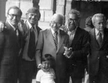 COLEGAS. Juan Rulfo junto a Juan José Arreola (izquierda) y en compañía de la llamada mafia (abajo). Fotos: Museo del Estanquillo.