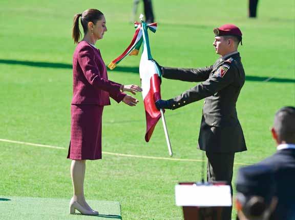 Acompañada por su gabinete federal, la jefa de gobierno de la Ciudad de México, Clara Brugada, y los representantes de la Cámara de Diputados y de Senadores, la mandataria resaltó que la bandera de México representa a las cuatro transformaciones; es el símbolo de los migrantes y de pueblo que lucha incansablemente por la justicia, enfatizó.