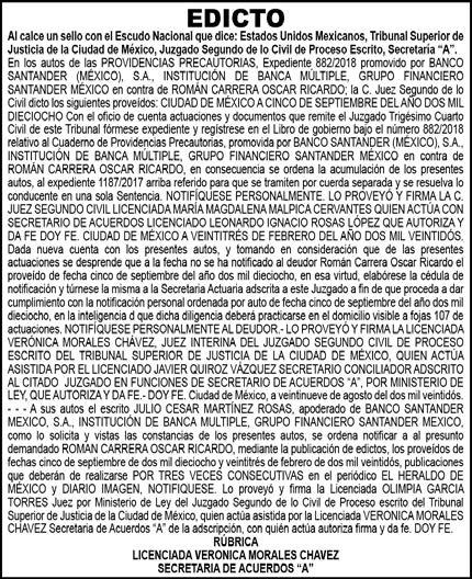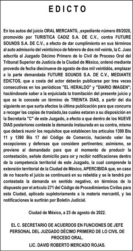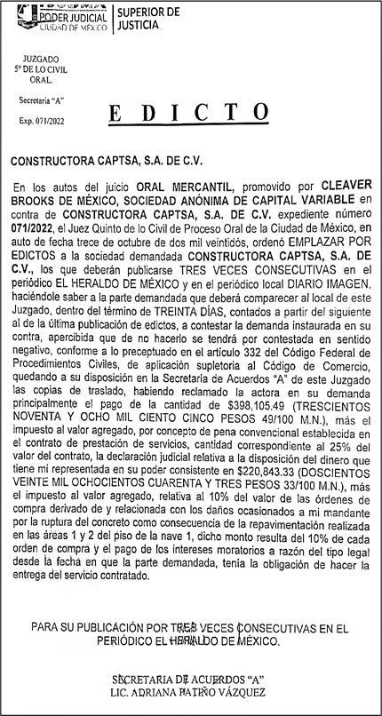 Diario El Heraldo de México. Editor responsable: Alfredo González Castro. Número de Certificado de Reserva otorgado por el Instituto Nacional del Derecho de Autor 04-2009-060419022100-101. Número de Certificado de Licitud de título y Contenido No.16921. Domicilio de la Publicación: Paseo de la Reforma No. 250, Piso 24, Colonia Juárez, Del. Cuauhtémoc, C.P. 06600, Ciudad de México. Imprenta: Impresora de Periódicos Diarios, S. de R.L. de C.V., con domicilio en Acalotenco No. 80, Colonia Barrio Santo Tomás, Azcapotzalco, Ciudad de México, C.P 02040. Publicación Diaria. Todos los derechos están reservados. Queda estrictamente prohibida la reproducción total o parcial de los contenidos e imágenes de esta publicación sin previa autorización de El Heraldo de México. El contenido de los artículos es responsabilidad exclusiva de los autores.