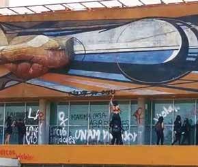 POR FRIDA VALENCIA PAIS@ELHERALDODEMEXICO.COMManifestantes encapuchados, procedentes del CCH Sur, grafi tearon el mural de David Alfaro Siqueiros, ubicado en Rectoría, en Ciudad Universitaria (CU), en protesta tras un caso de abuso sexual que ocurrió hace una se mana en el plantel de Coyoacán.