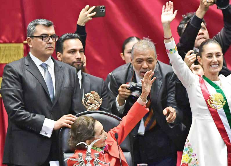 › Hizo historia Claudia Sheinbaum, ayer, al convertirse oficialmente no sólo en la primera presidenta de México, sino de Norteamérica. En el acto estuvieron presentes representantes de 105 países de todo el mundo, entre mandatarios, primeros ministros, legisladores y diplomáticos, además de los empresarios más importantes de la nación. También estuvieron deportistas, como el campeón Saúl El Canelo Álvarez, y gran número de personajes del ámbito artístico.