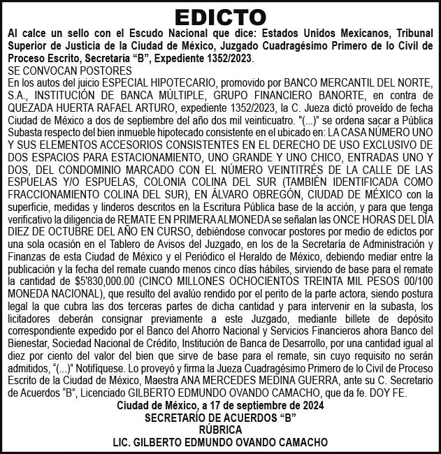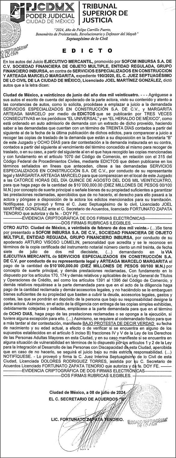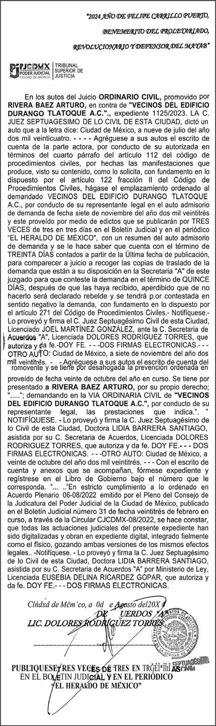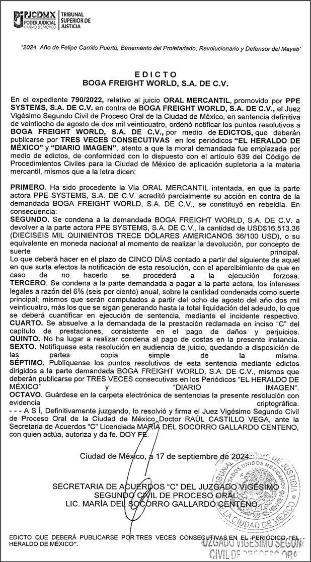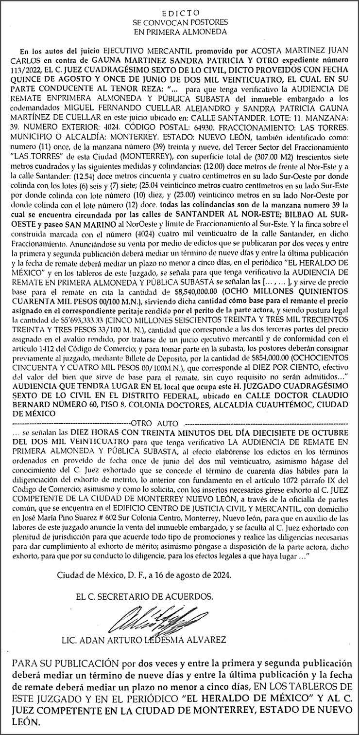Periódico El Heraldo de México. Editor Responsable: Alfredo González Castro, Número de Certificado de Reserva otorgado por el Instituto Nacional del Derecho de Autor: 04-2009-060419022100-101. Número de Certificado de Licitud de Título y Contenido: 16921. Domicilio de la Publicación: Av. Insurgentes Sur, No. 1271, piso 2, oficina 202, Extremadura Insurgentes, Benito Juárez, C.P. 03740. Impreso en LA CRÓNICA DIARIA, SA DE CV, Avenida Azcapotzalco La Villa 160, Colonia San Marcos, Alcaldía Azcapotzalco, Ciudad de México, CP 02020. Distribuidores: ARREDONDO E HIJOS DISTRIBUIDORA, SA de CV, Iturbide 18 local D, Colonia Centro