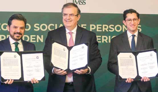 l El canciller Marcelo Ebrard, y el director general del Instituto Mexicano del Segu ro Social (IMSS), Zoé Robledo, suscri bieron un convenio de colaboración que